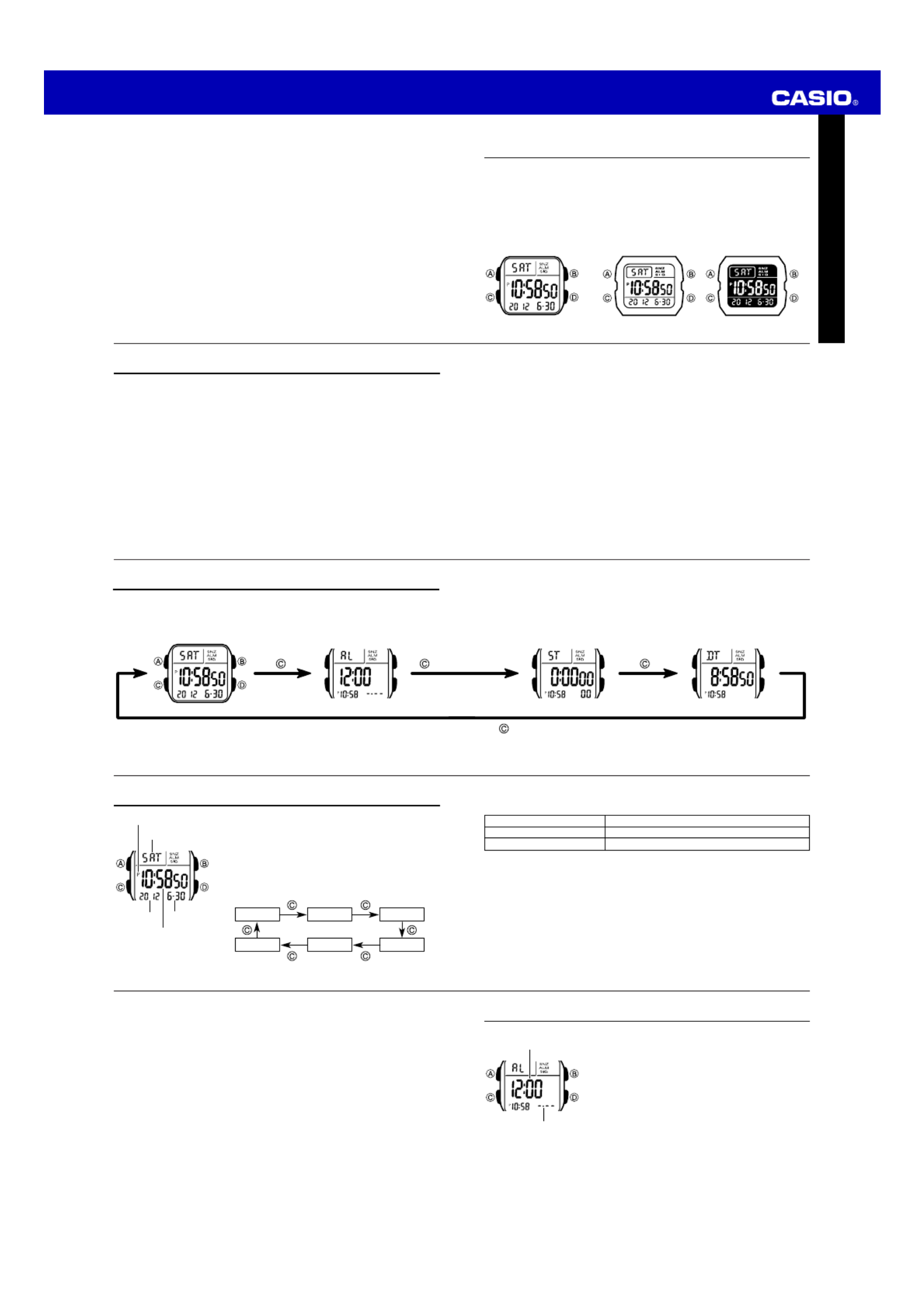 •In any mode, hold down C for about one second to return to the Timekeeping