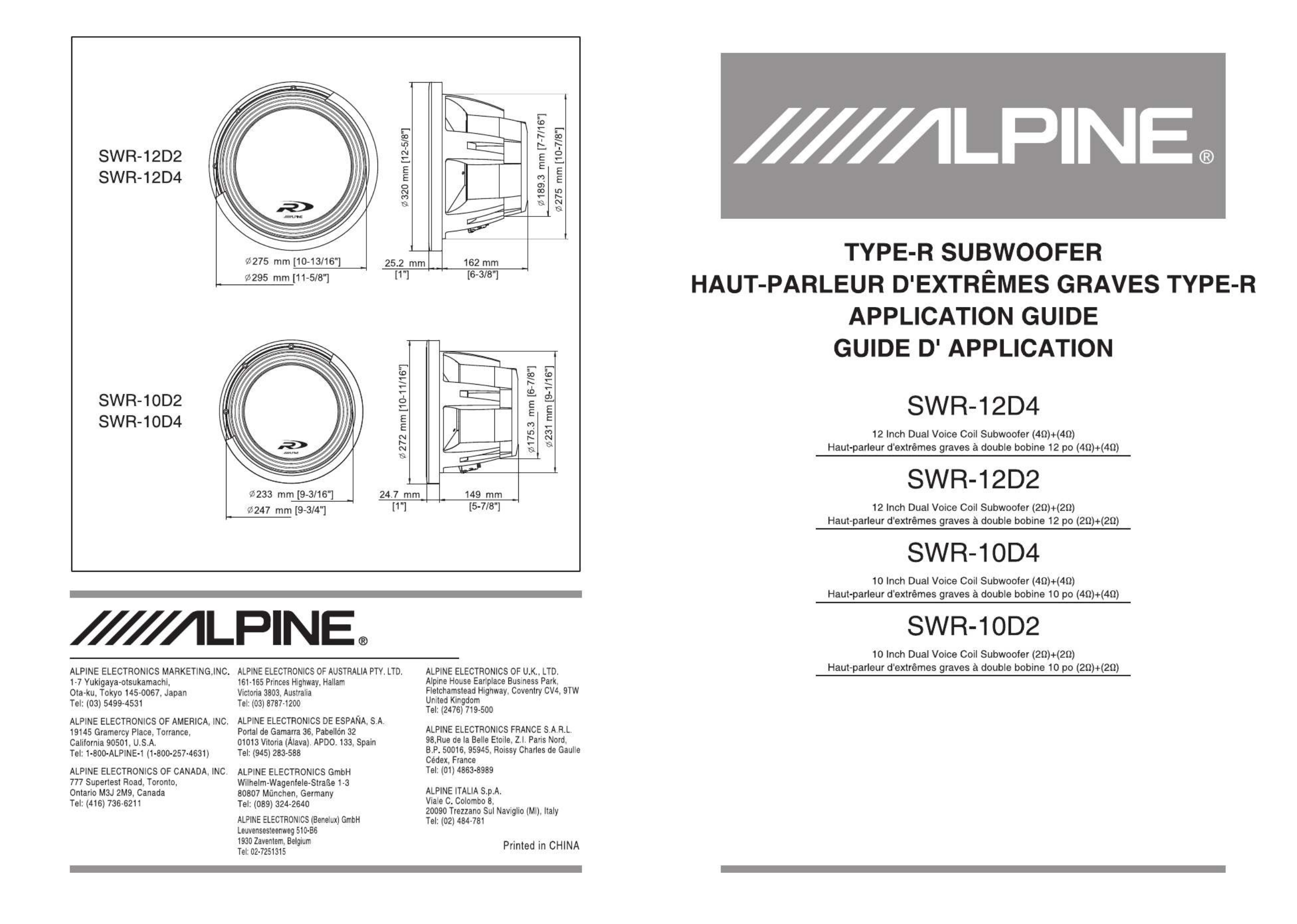 Oto Alpine SWR-12D4 (głośnik samochodowy) instrukcja użytkownika. 4 strony w języku Angielski o wadze 1.2 Mb. Jeśli nie możesz znaleźć odpowiedzi na swoje pytanie Zapytaj naszą społeczność.