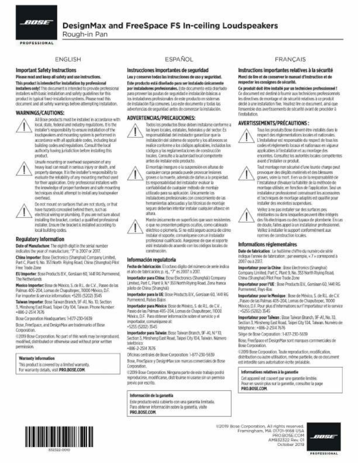 Oto Bose DesignMax DM2C Rough-In Kit (nieskategoryzowany) instrukcja użytkownika. 4 strony w języku Angielski o wadze 0.2 Mb. Jeśli nie możesz znaleźć odpowiedzi na swoje pytanie Zapytaj naszą społeczność.