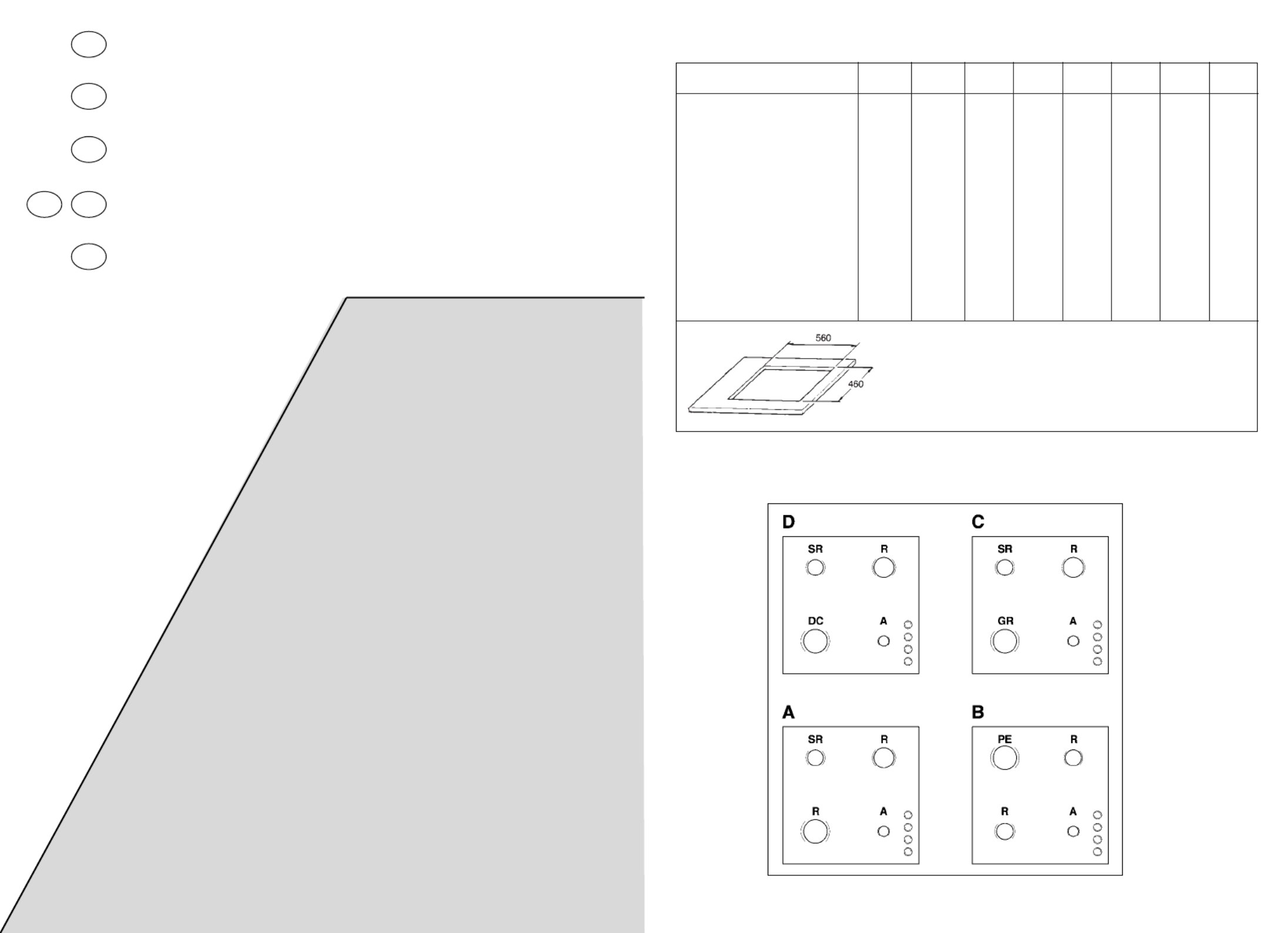 Piani di cottura 60x50 A A B B C C D D