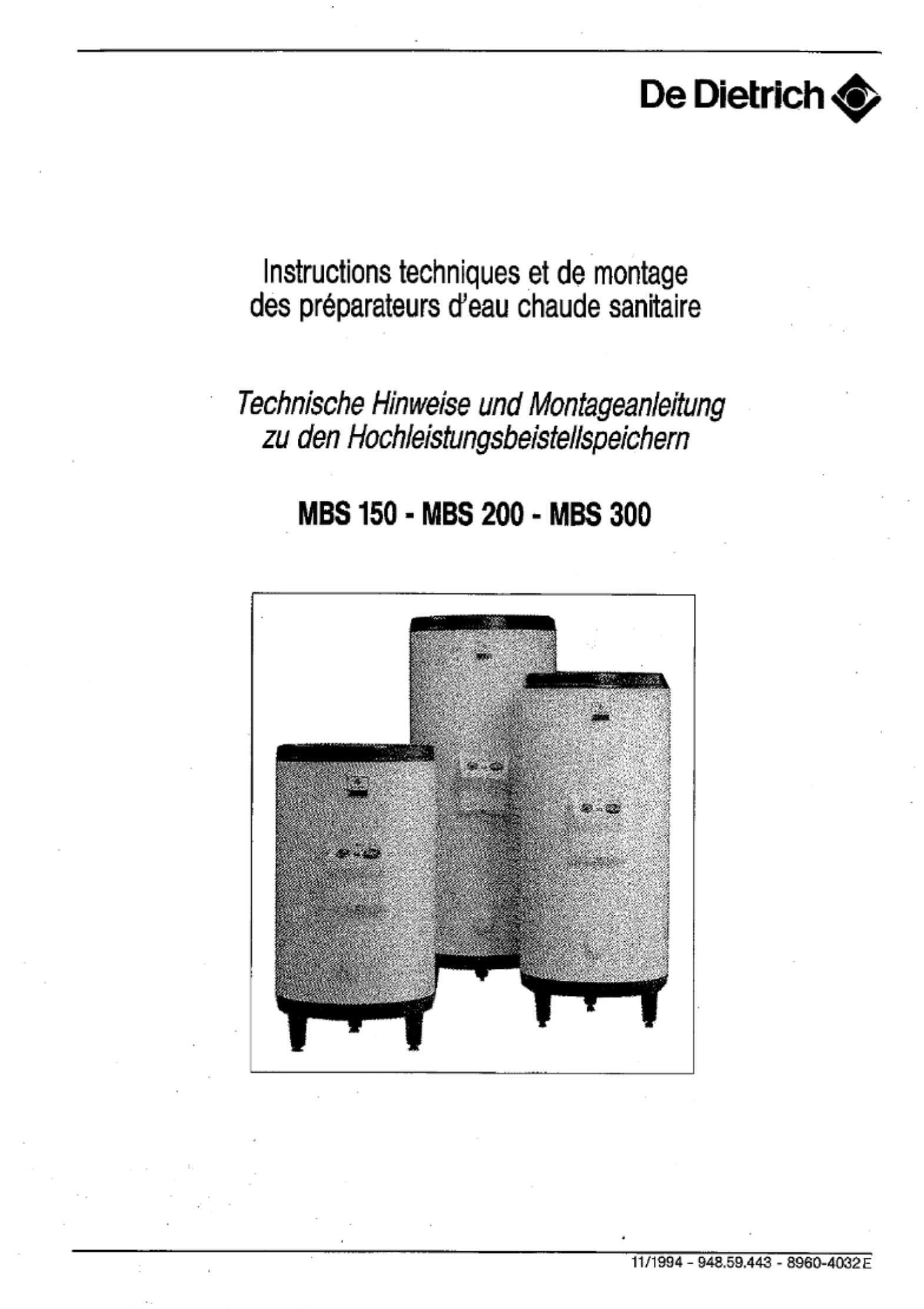 Oto De Dietrich MBS 300 (kocioł i podgrzewacz wody) instrukcja użytkownika. 12 strony w języku - o wadze 2.6 Mb. Jeśli nie możesz znaleźć odpowiedzi na swoje pytanie Zapytaj naszą społeczność.
