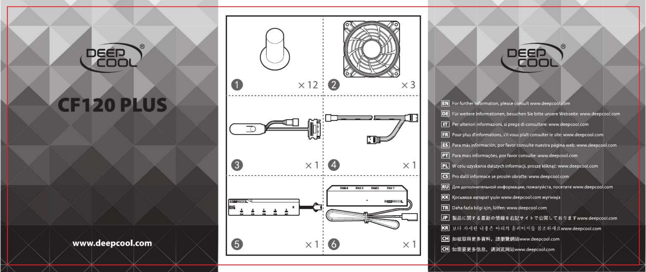 Oto DeepCool CF120 Plus (wentylator do PC) instrukcja użytkownika. 2 strony w języku Angielski o wadze 0.3 Mb. Jeśli nie możesz znaleźć odpowiedzi na swoje pytanie Zapytaj naszą społeczność.