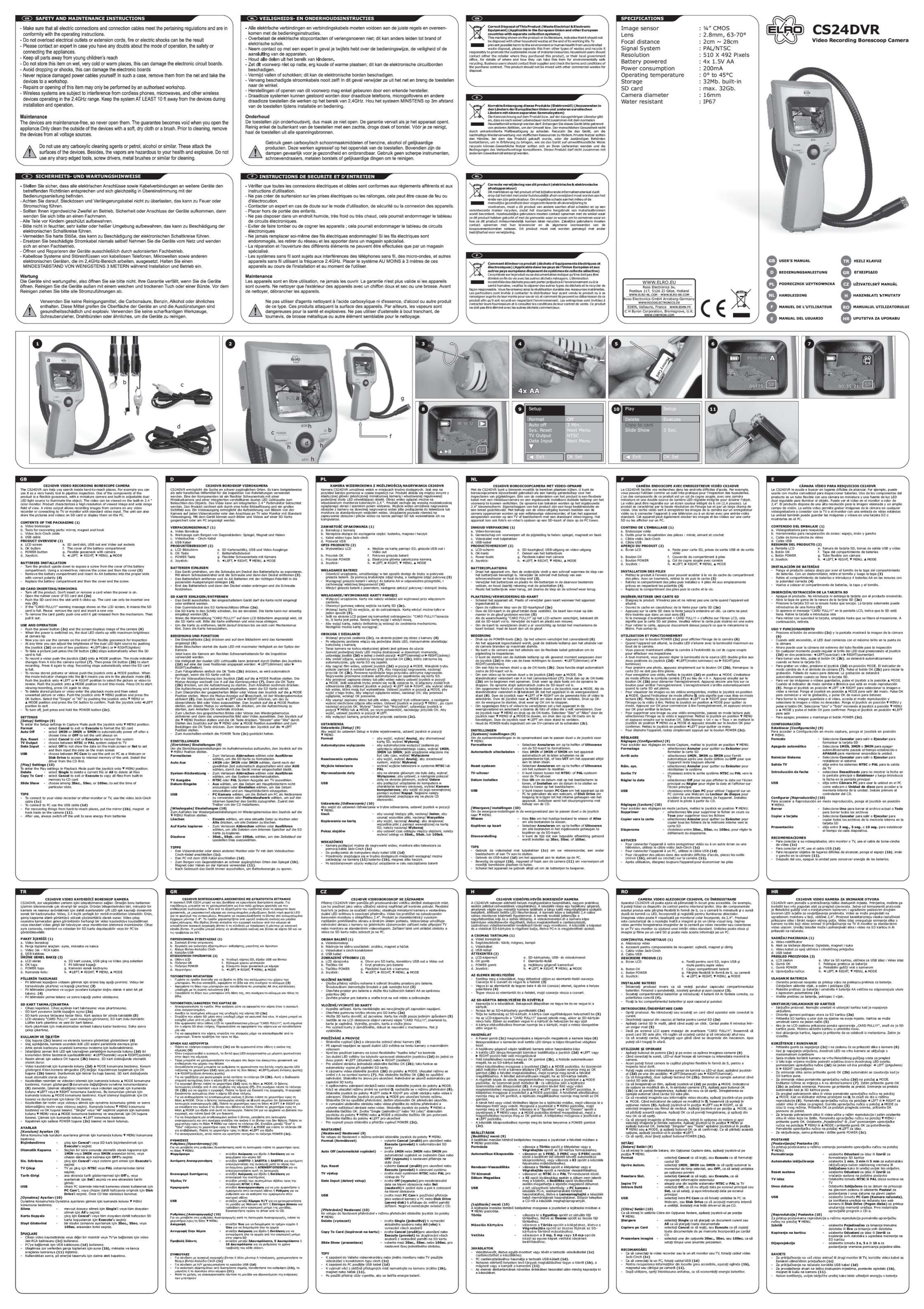 Oto Elro CS24DVR (kamera bezpieczeństwa) instrukcja użytkownika. 1 strony w języku - o wadze 1.5 Mb. Jeśli nie możesz znaleźć odpowiedzi na swoje pytanie Zapytaj naszą społeczność.
