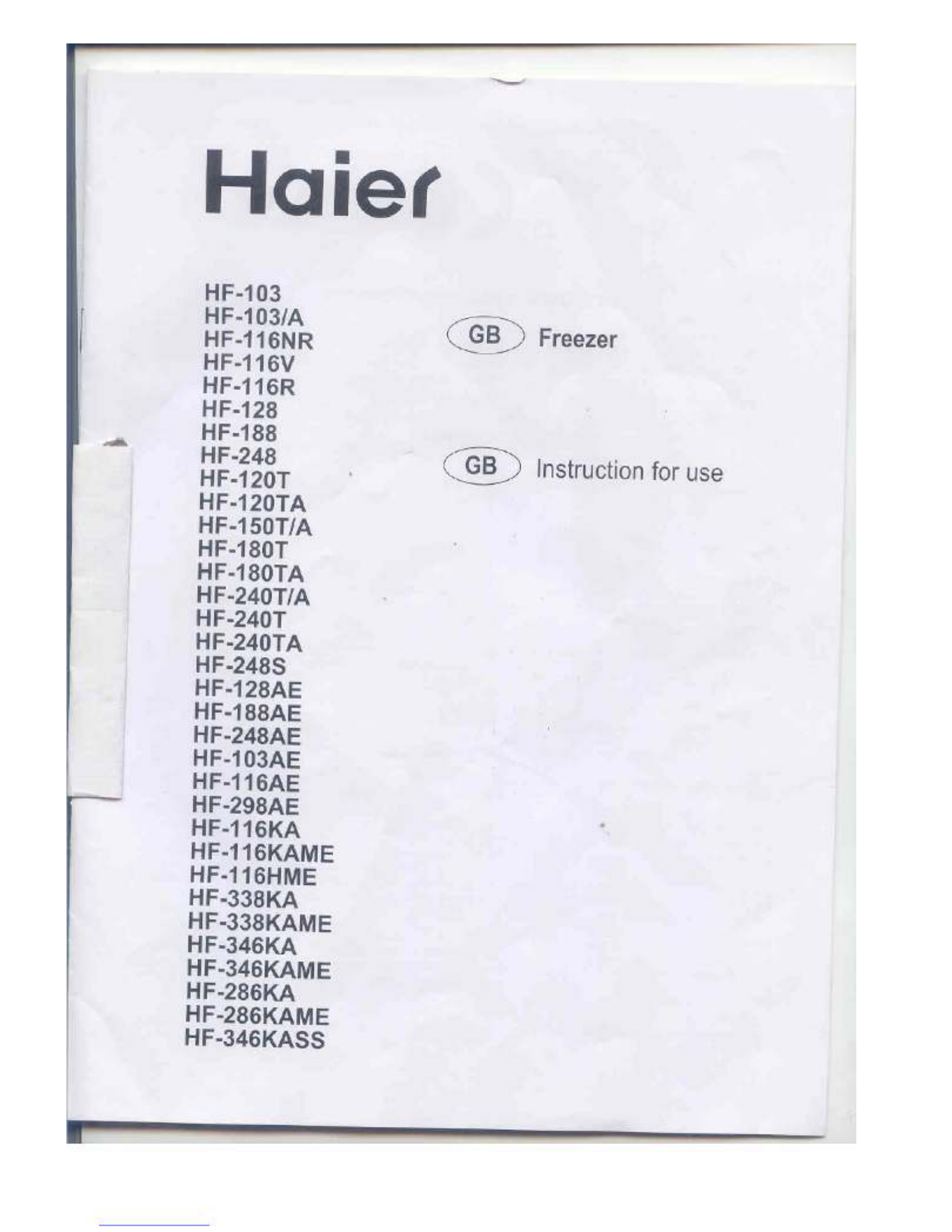 Oto Haier HF-346KASS (zamrażarka) instrukcja użytkownika. 11 strony w języku Angielski o wadze 0.9 Mb. Jeśli nie możesz znaleźć odpowiedzi na swoje pytanie Zapytaj naszą społeczność.