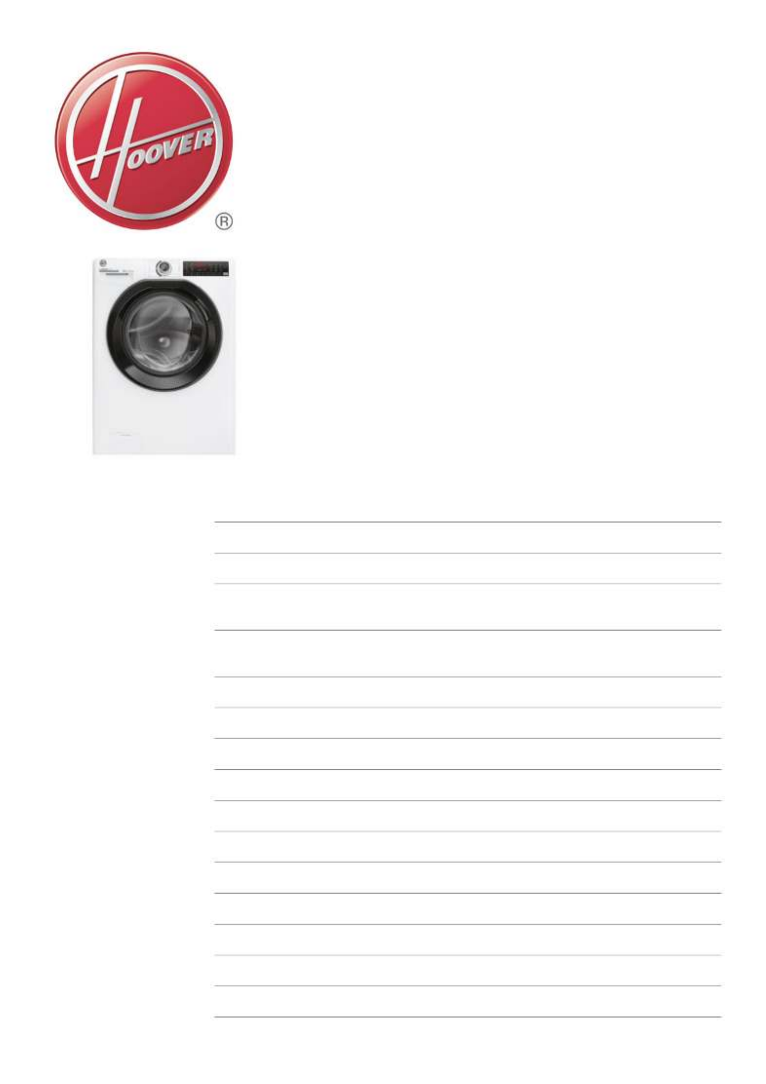 Oto Hoover H3WPS2106TAB6-17 (pralka) instrukcja użytkownika. 3 strony w języku Angielski o wadze 0.1 Mb. Jeśli nie możesz znaleźć odpowiedzi na swoje pytanie Zapytaj naszą społeczność.