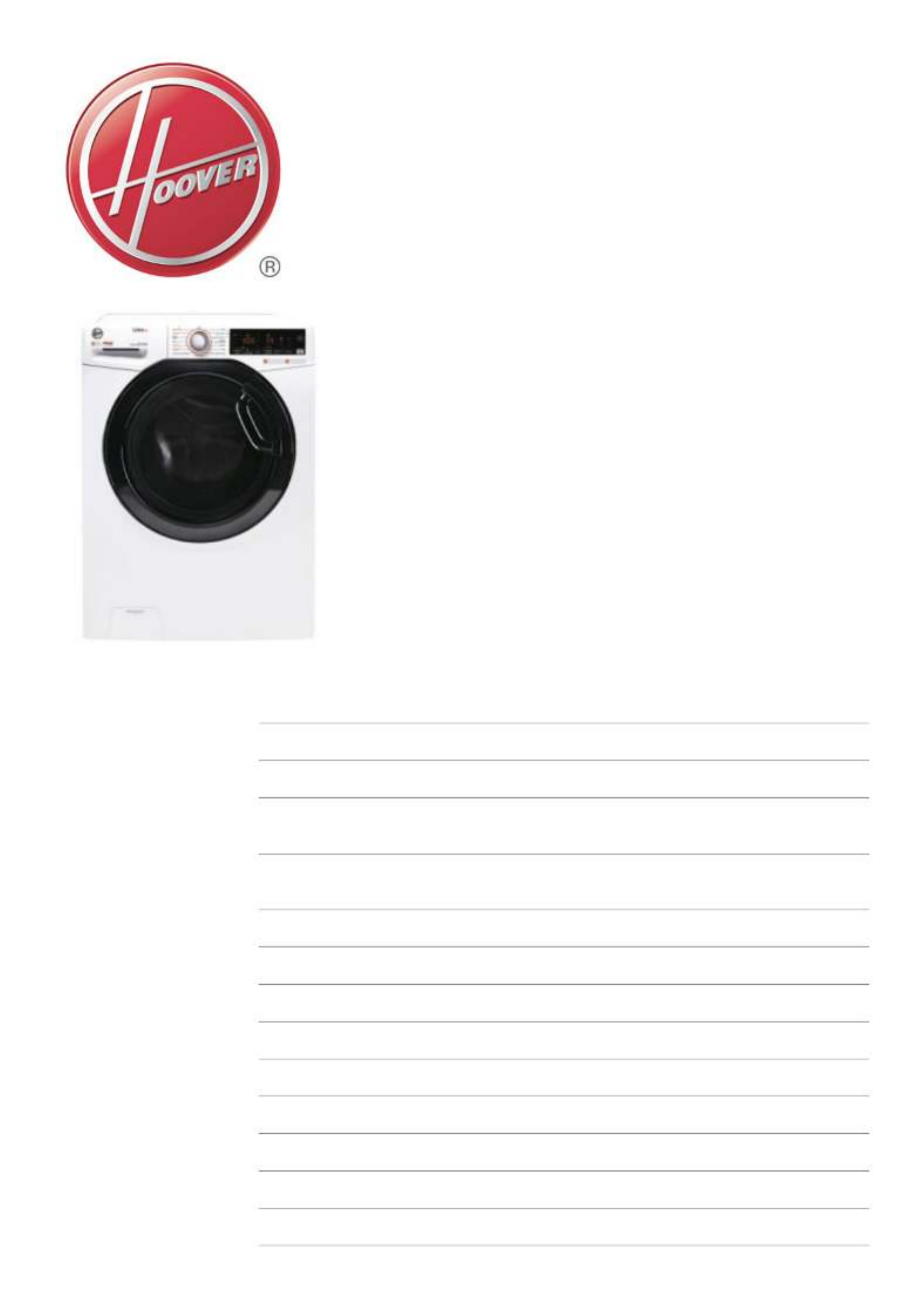 Oto Hoover HPS4374DAMR-11 (pralka) instrukcja użytkownika. 3 strony w języku Angielski o wadze 0.1 Mb. Jeśli nie możesz znaleźć odpowiedzi na swoje pytanie Zapytaj naszą społeczność.