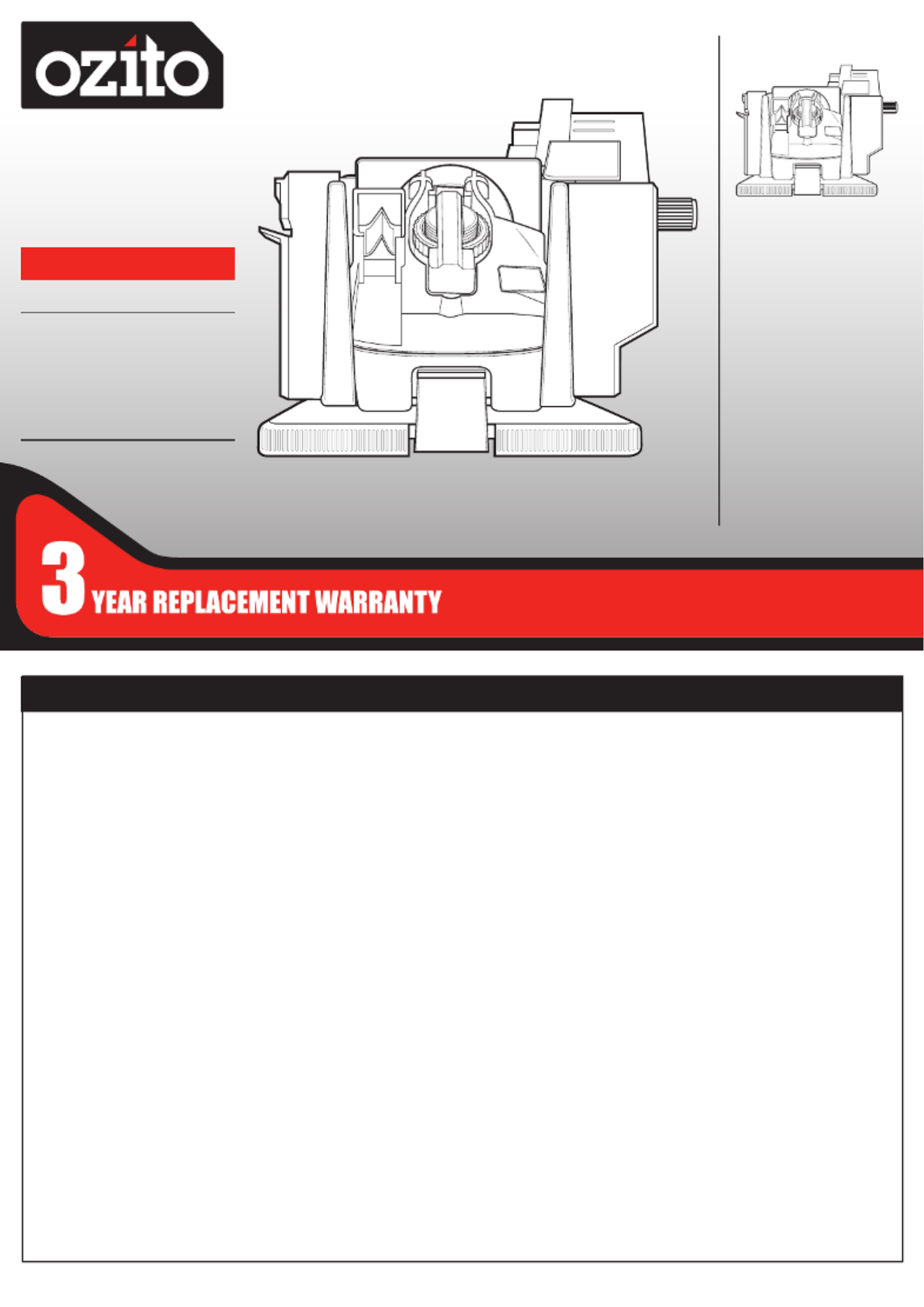 Ozito Industries Pty. Ltd. 25 Fox Drive, Dandenong South, Victoria, Australia 3175.
