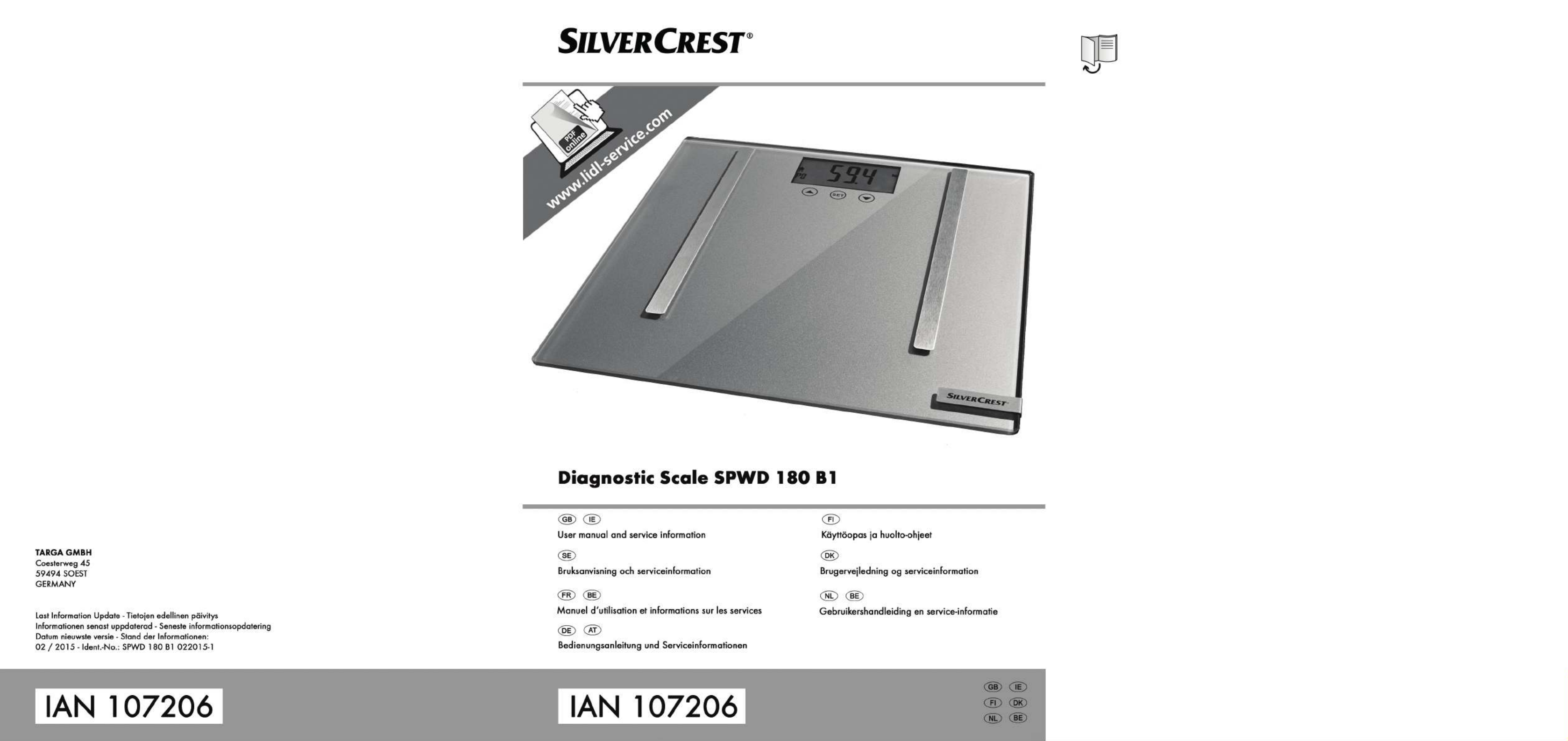 Oto SilverCrest SPWD 180 B1 (waga) instrukcja użytkownika. 46 strony w języku Angielski o wadze 3.3 Mb. Jeśli nie możesz znaleźć odpowiedzi na swoje pytanie Zapytaj naszą społeczność.