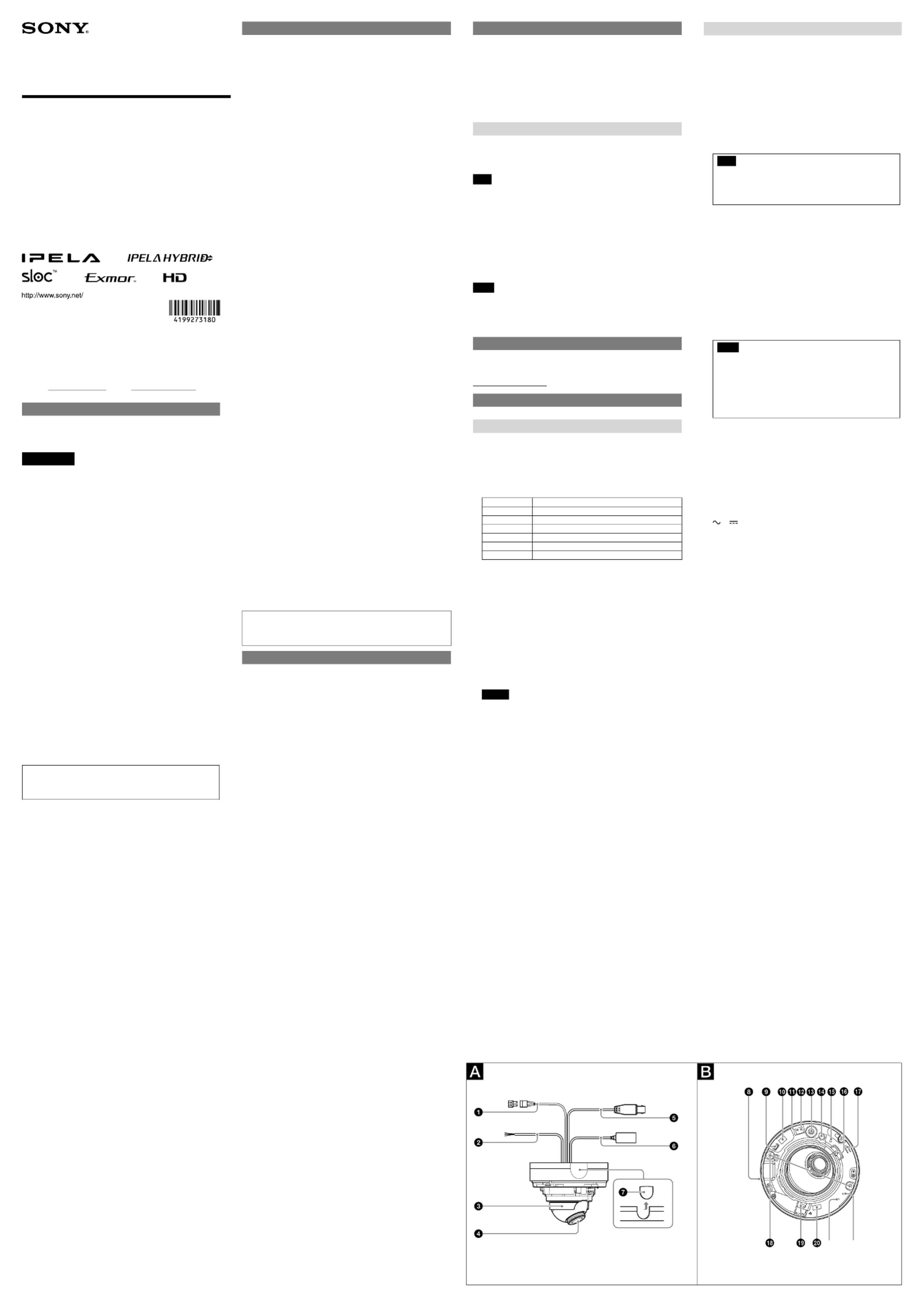 Oto Sony SNC-EM520 (kamera bezpieczeństwa) instrukcja użytkownika. 2 strony w języku Angielski o wadze 0.5 Mb. Jeśli nie możesz znaleźć odpowiedzi na swoje pytanie Zapytaj naszą społeczność.
