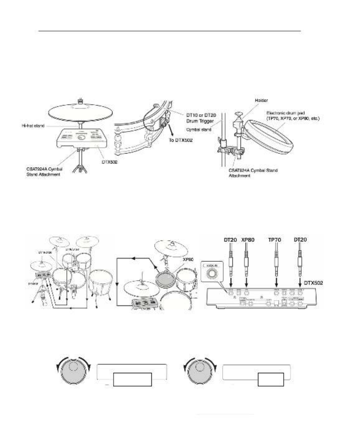 ! ! !a. Attach the DTX502 Module to a hi-hat/cymbal stand using the CSAT924A.!